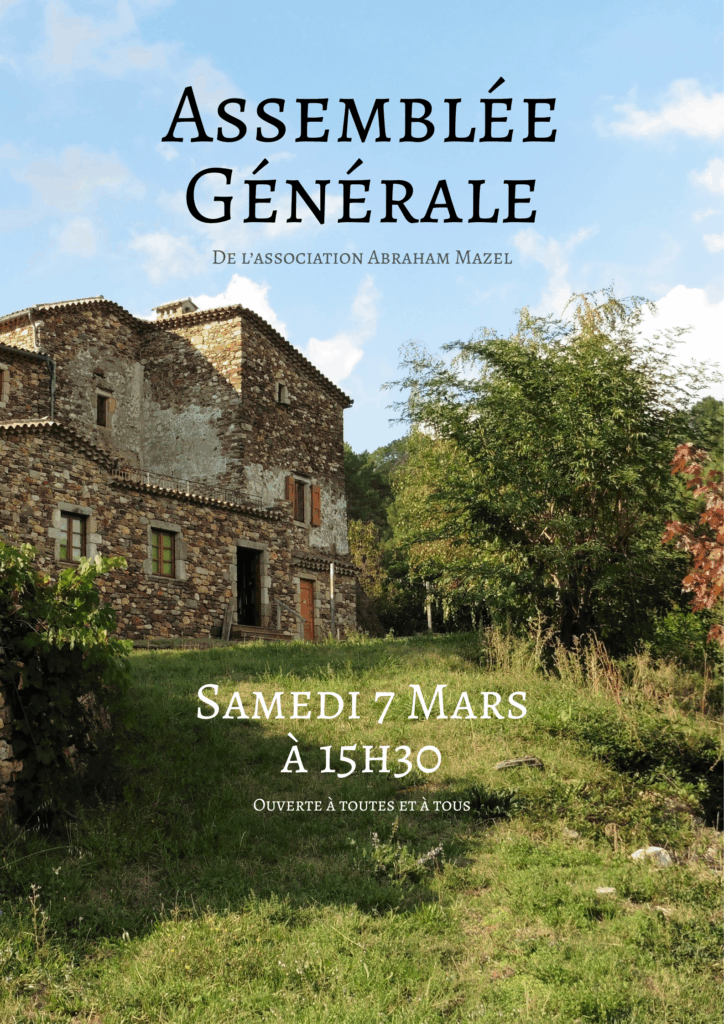 ASSEMBLÉE GÉNÉRALE DE L’ASSOCIATION MAZEL : SAMEDI 7 MARS à partir de 15h30.